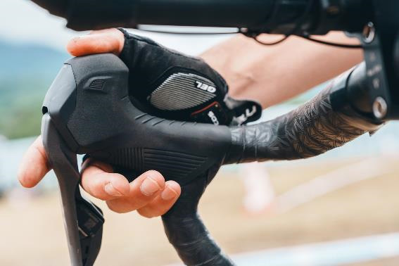 Di2は機械式変速に比べてショートストロークかつ軽い力で操作が可能なので、アンバウンドのような長時間のグラベルライドで疲労低減が可能です。クリック感は、タッチパネルのようにちょっと触っただけで変速してしまうほどセンシティブではなく、かといって機械式ほど力はいらないという、ちょうどいい味付けになってますね。ハンドルが振動している状況に最適なクリック感だと感じます。ワイヤレスになったのはメリットでしかありません。組むうえで簡単になりますし、ハンドル周りのケーブルがなくなることで断線の心配もなくなります。