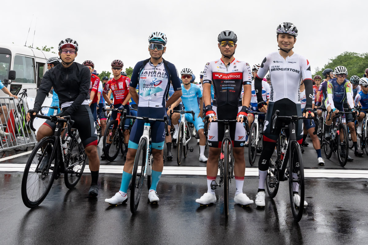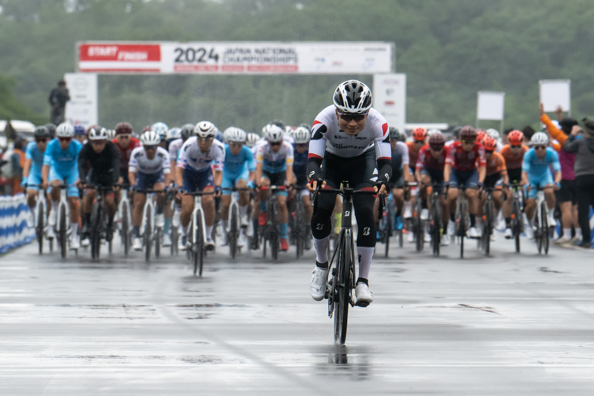 8kmのサーキットを20周する160kmで行われた男子エリートには、パリオリンピック代表に選出された新城幸也(バーレーン・ヴィクトリアス)と、トラックでのパリオリンピック出場が決まっている橋本英也と今村駿介(共にチームブリヂストンサイクリング)、そしてディフェンディングチャンピオンの山本大喜(JCLチームUKYO)の4人を先頭に、タイムトライアルとの2冠を目指す金子宗平(群馬グリフィンレーシングチーム)など、国内外で活躍するプロアマ107名がスタートラインに並んだ。