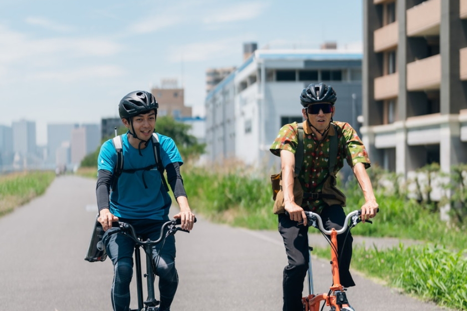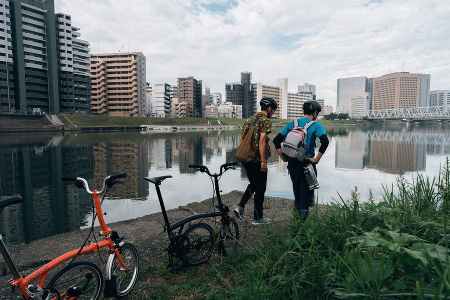 モーターバイクに乗ることが趣味の長島さんだが、スポーツバイクにはほとんど乗ったことがないという。そこで今回は、スポーツバイクの走りの良さと、小径車の足つきの良さを両立する折りたたみバイクの代名詞ブロンプトンに乗ってもらった。スポーツバイク未経験でも抵抗は少ないだろうし、なんといっても、都市型河川にも似合う佇まいがいい。