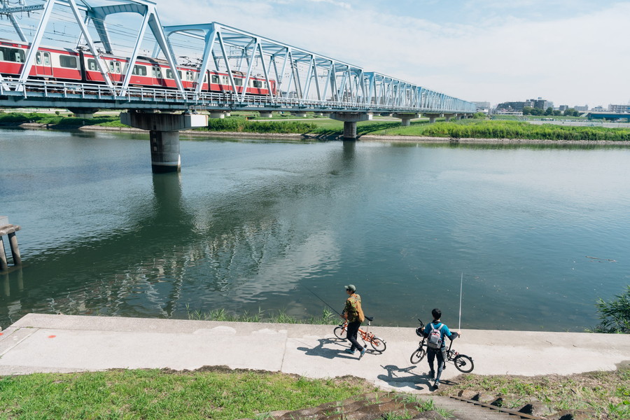 そこで今回は、日本を代表する老舗釣り雑誌「つり人」にご協力をいただいて、ライド&フィッシュのハードルを下げる釣りへと自転車で出かけた。そのターゲットは、都市型の河川の河口域に多く生息するテナガエビだ。