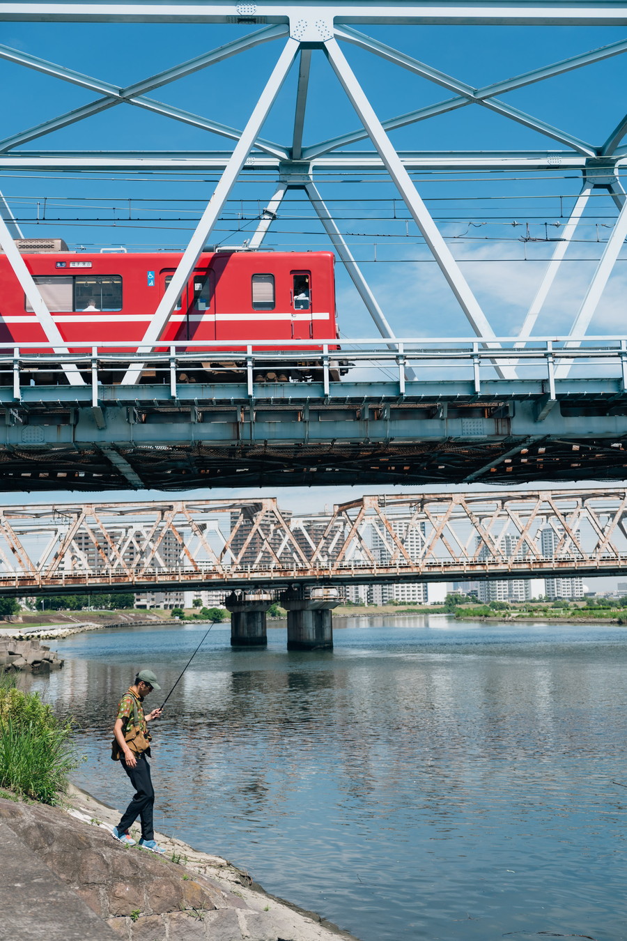 今回の舞台は多摩川河口。羽田空港に飛行機が発着するのを尻目に、土手のサイクリングロードを走りながら良さそうなポイントを探す。朝、近隣の住民が散歩に出てきている間を縫って、ブロンプトンでゆっくり流していると、この地域の日常に触れるようで新鮮だ。