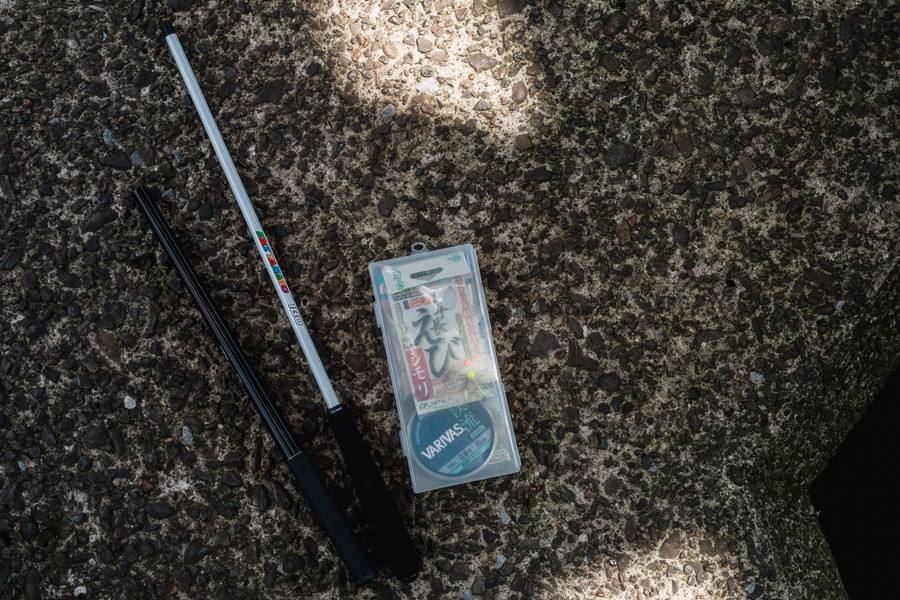 仕掛けも釣具屋で売っているセットで必要充分。エサが底につくようにウキの位置を調整したら、エビのいそうなところに落とすだけ。エビが近くにいれば、モゾモゾとウキが不審な動きをするはず。そこで魚釣りのようにビシっとアワセるのではなく、しばらくウキの動きを観察すること。モゾモゾと左右に行ったり来たりしたウキの動きがどこかでとまったら、竿をそっと上げてやればいい。