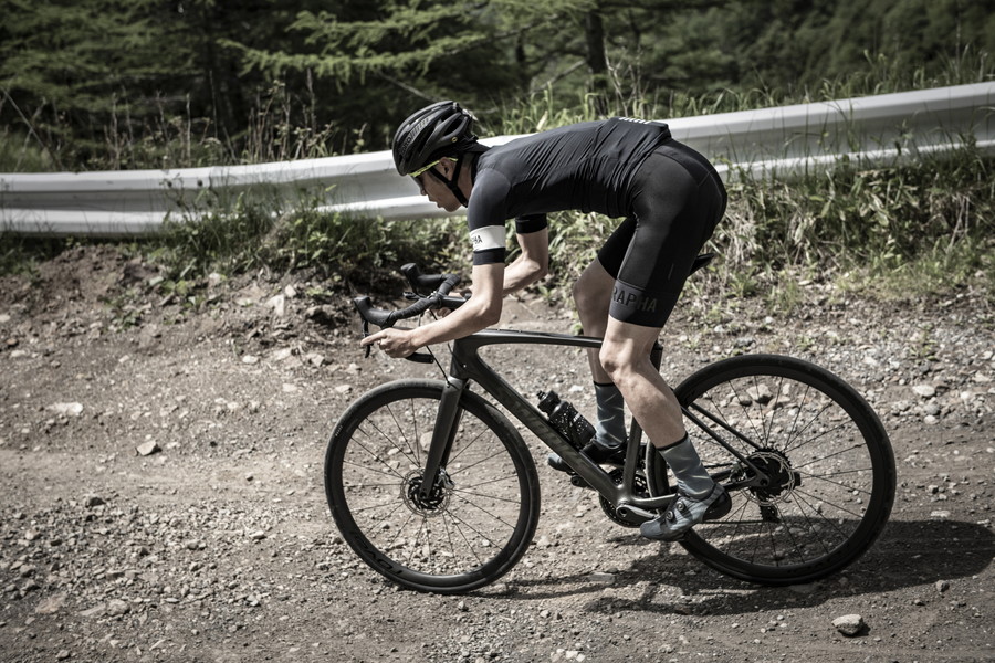 それにしても、前回の富士スバルラインで乗ったS-Works Aethos(https://funq.jp/bicycle-club/article/957650/)とまでは言わないが、登坂が軽い。パリッと乾いた、それでいて反応性のよい踏み味は、S-Works Aethos同様FACT12Rカーボンが効いている。
