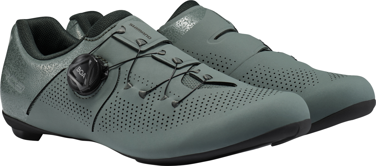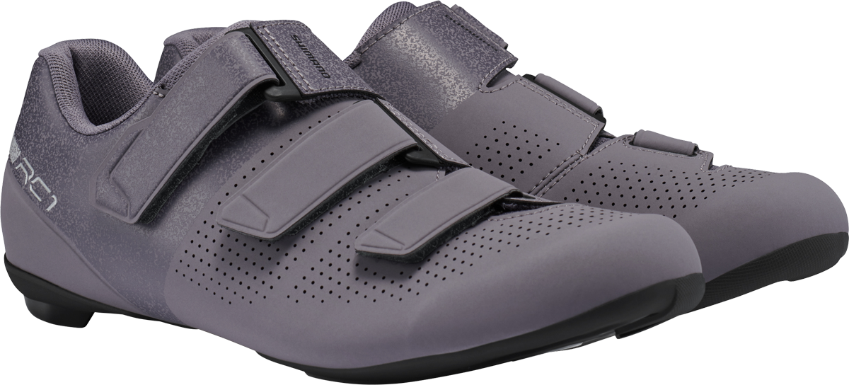 RC102とRC102Wは、シマノの最高級ロードシューズS-PHYREのDNAを受け継いでいる。新しい3ストラップクロージャーシステムにより、洗練されたルックスで足を固定する。シームレスなミッドソール構造とパンチング加工を施したシンセティックレザーのアッパー、高さを抑えたスタックハイトにより、快適性と冷却性、パフォーマンスを高めている。RC102Wは女性専用ラストを採用している。