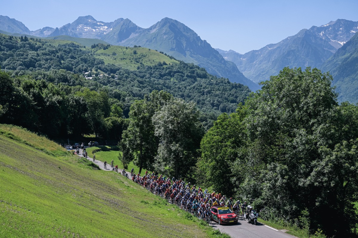 ピレネーの山々を駆けるプロトン。大会第2週の後半に入って、いよいよ本格山岳での勝負を迎えている。