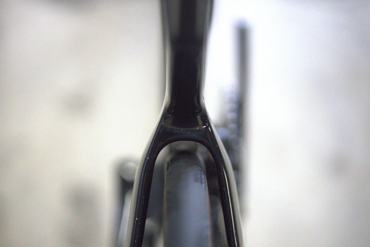 フレームの形状に飛躍的な進化はないが、もちろん完全新設計。空力性能をさらに向上させるため、フォークは前後に長くなり、ヘッドチューブ、ダウンチューブ、シートチューブはわずかに細くなった。それによる剛性低下を補うため、トップチューブはやや太くなっているという。また、トップチューブ・シートチューブ・BBエリアの強度を向上させ、落車による破損の可能性を下げた。フレーム重量は960g(ステルスカラー、Mサイズ)と、前作比で30~40g軽くなっている。