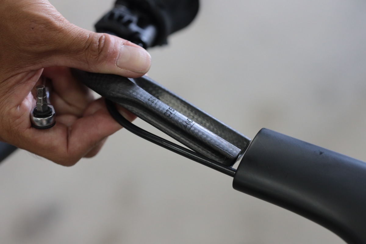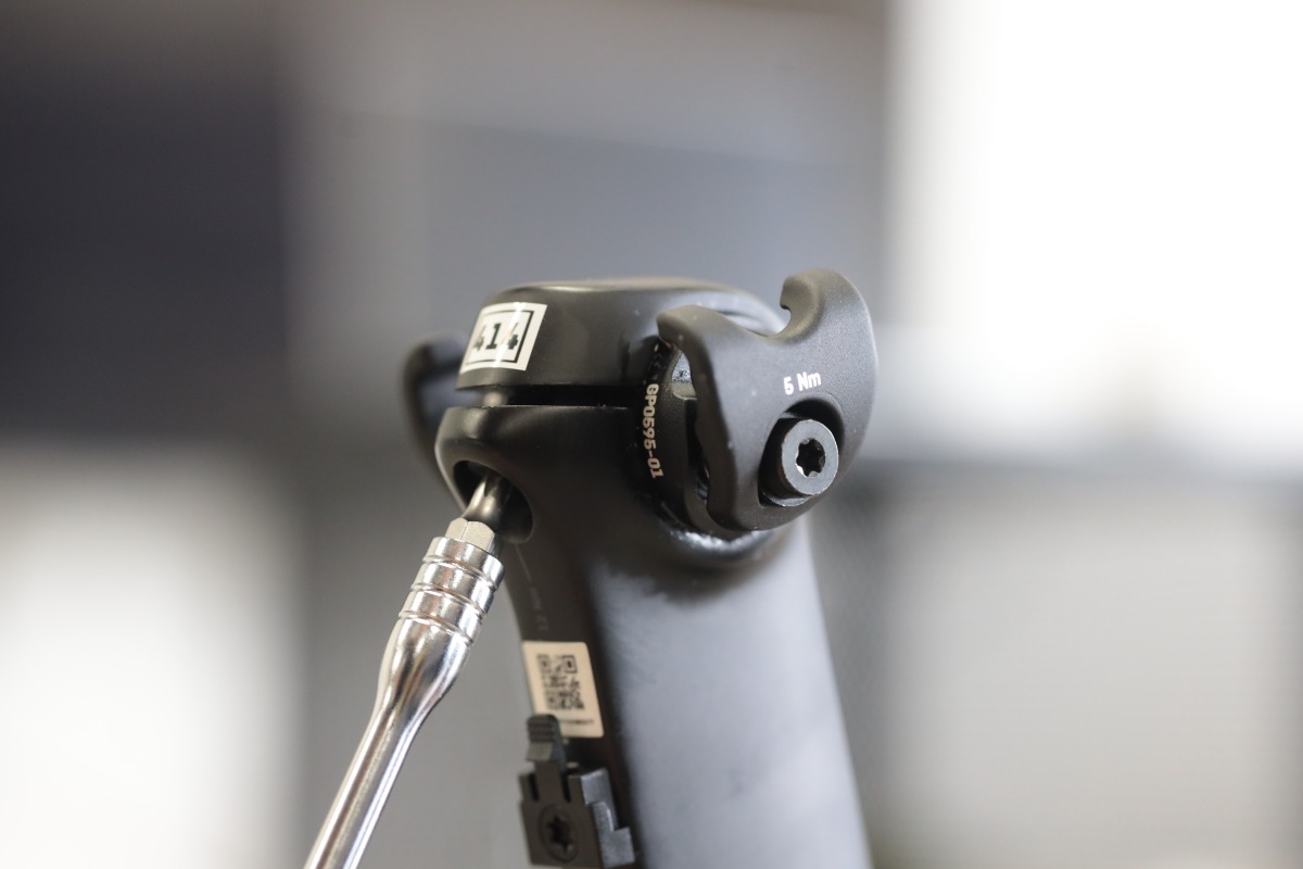ハンドル高の調整は専用スペーサーで行う。調整幅は前作が15mmだったところ、5mm増えて20mmとなった。ヘッドの調整も専用工具ではなくT25のボルトに変更され、整備性が向上。