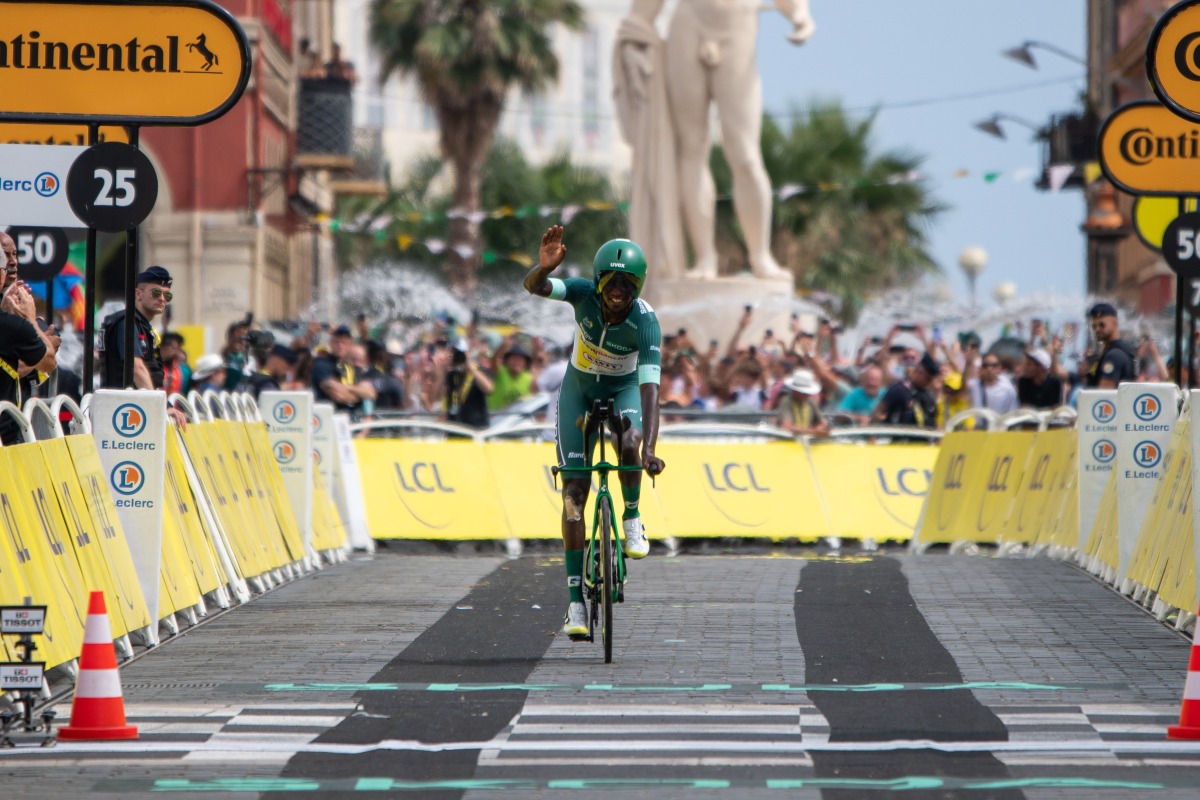 29番目に出走したビニヤム・ギルマイ(アンテルマルシェ・ワンティ、エリトリア)は、アフリカ人ライダーとしては初めてのポイント賞に向けて最終ライド。こちらも無難にコースを走り抜いて、先に走り終えていたチームメートの待つフィニッシュに到達した。もちろん、マイヨ・ヴェールも確定した。