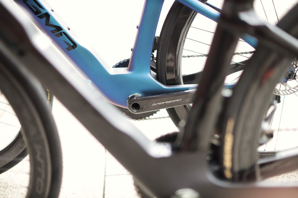思い返せば、ドグマがF世代になってから、どんどん高剛性化が進んでいた。F8~F10~F12と、いずれもアマチュアにとってはガチガチと表現したくなるほどの剛性だったが、先述したように先代ドグマFでペダリングフィールを柔和にし、性能を維持したまま一体感が高まった。新型もその方向性を堅持したということは、おそらく作り手に「現代レーシングバイクはこうあるべき」という意図があるのだろう。