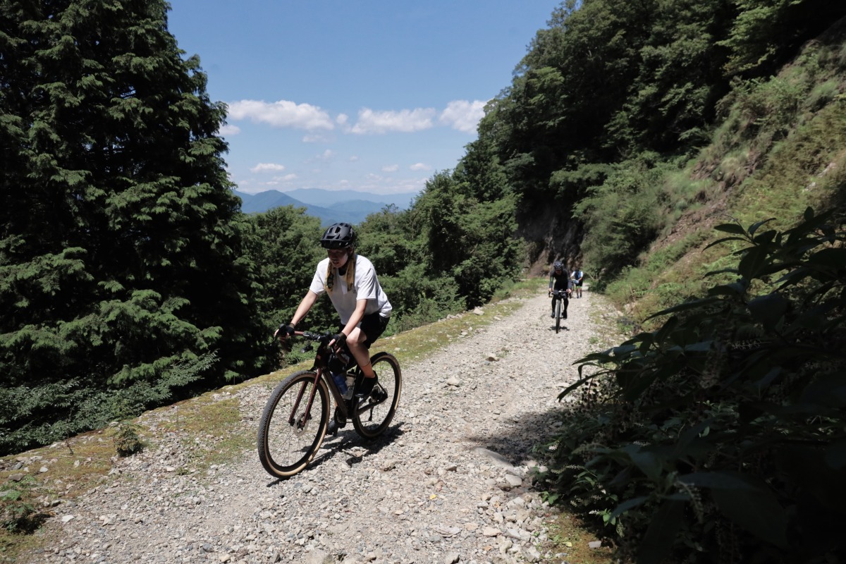 途中、木陰で休憩していると、パナレーサーのジャージを着たガイドライダーが軽々と上ってきた。話を聞いてみると「下見でここへひとりで来たときは、どうしようかと思いました」と言っていた。楽しめるコースを探してくれたことへ「ありがとう」と感謝しながらも、「でも、キ・ツ・すぎるぞ!」と心の中では恨み節が続くのであった。