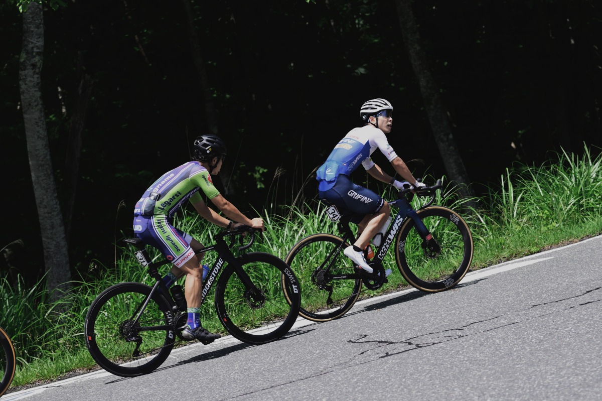 赤城山を下った後はこの日の2つ目の峠である片品村の金精峠へ向かう。沼田市の観光名所のひとつである吹割の滝あたりの上りはじめから考えると、ざっくり30kmくらいは上る。その距離から、「富士ヒルが道中に1回まじってる」と話す参加者もいた。この長い上りで集団もばらけ、先頭は金子選手が引っ張っていた。