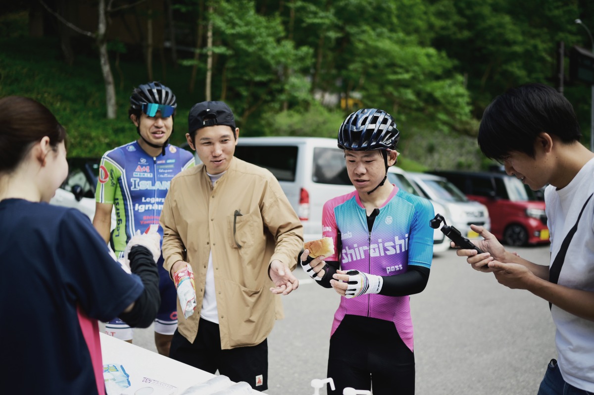 山頂駐車場では片品村の「花まめパン」が振る舞われた。また、ライダー達のことを考えた運営側の判断で練乳の追加サービスもあった。イベントを反復して開催していくことで、最初は自転車に興味がなかった人運営スタッフもサイクリストの趣向を理解していくことが多い。こういった形で少しずつでも自転車への理解が深まっていってほしいものだ。