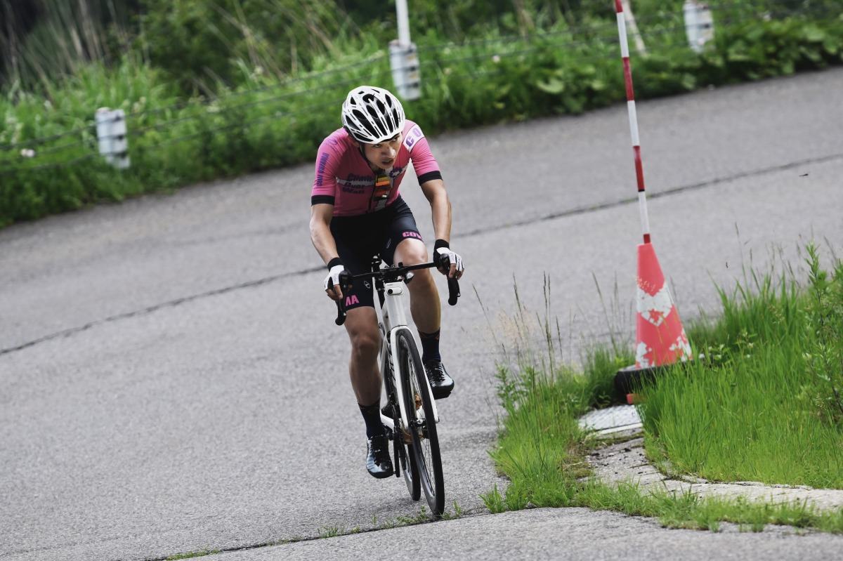 本イベントが行わる群馬県に本拠地を置くプロチーム・群馬グリフィンの選手と走れるのも参加者たちにとっては魅力だ。写真左の小山選手は既に4回目の参加。右の金子選手はつい先日行われた全日本選手権のTT男子エリートで優勝、ロードではゴールスプリントで惜しくも2位という間違いなく国内トップクラスの選手。こんな金子選手だが、実は2回前の「10,000UPチャレンジDay」に参加し、途中でDNFを喫している。このイベントの過酷さが分かりすぎる話だ。金子選手は「集中して走り、完走してリベンジをしたい」とスタート前に話していた。