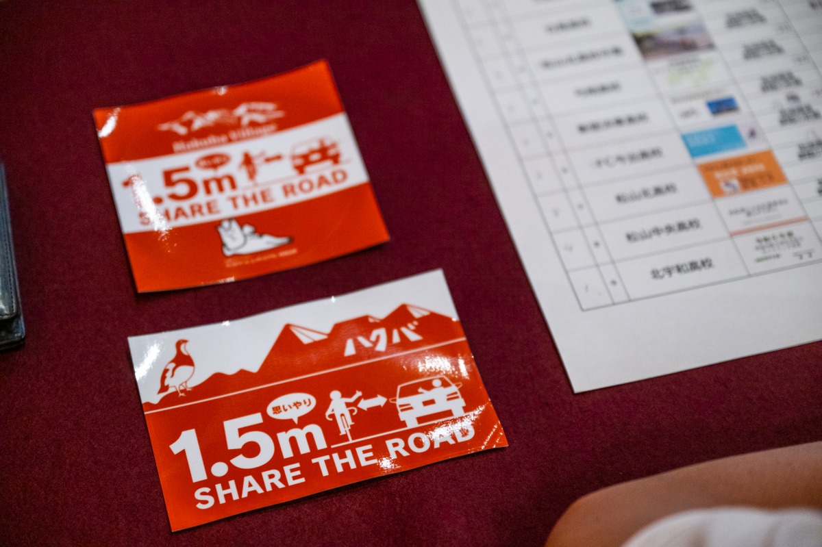 愛媛県と地元長野県白馬村との自転車走行環境の事情の違いを発表した。さらに地域での実践している安全活動の内容を紹介、「トラックから自転車がどう見えているのか?」といった実際のトラックを使った死角体験やおもいやり1.5m運動についても説明した。