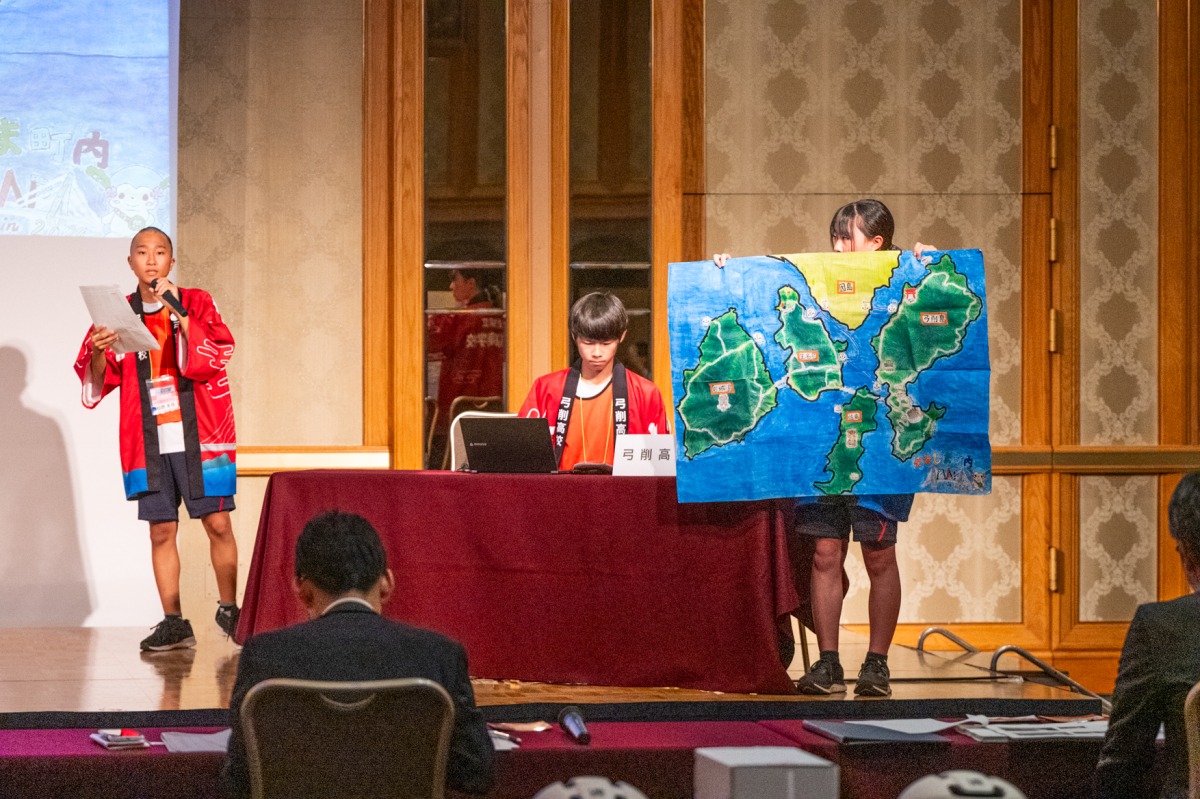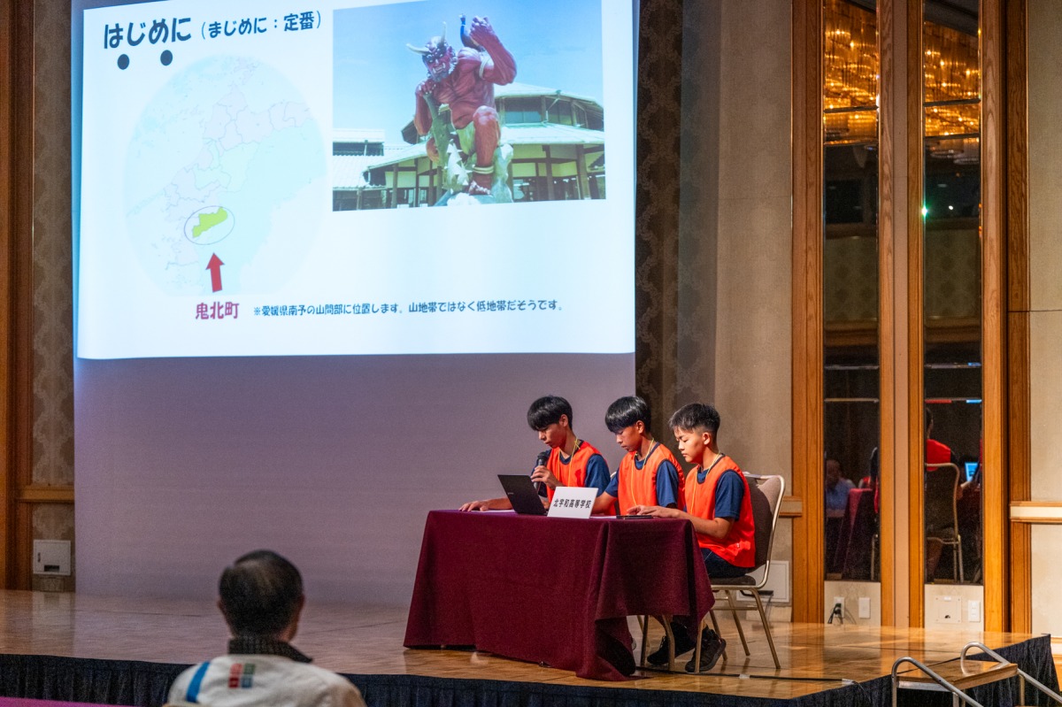 終始トップを維持していた松山北高等学校中島分校が討論バトルでも好成績を収め、見事に第1位となり最優秀校に輝いた。メンバーの3人、松本洋太郎さん、津野仁之介さん、草分こはるさんは昨年は補欠メンバーとして先輩たちの活動を見ていたという。今回見事1位に輝いたのはこうした先輩たちの活動を学び、引きつぎ自主的に活動してきたチームがあったからだ。