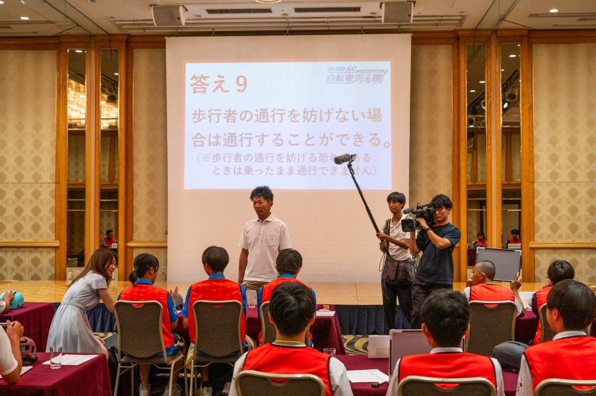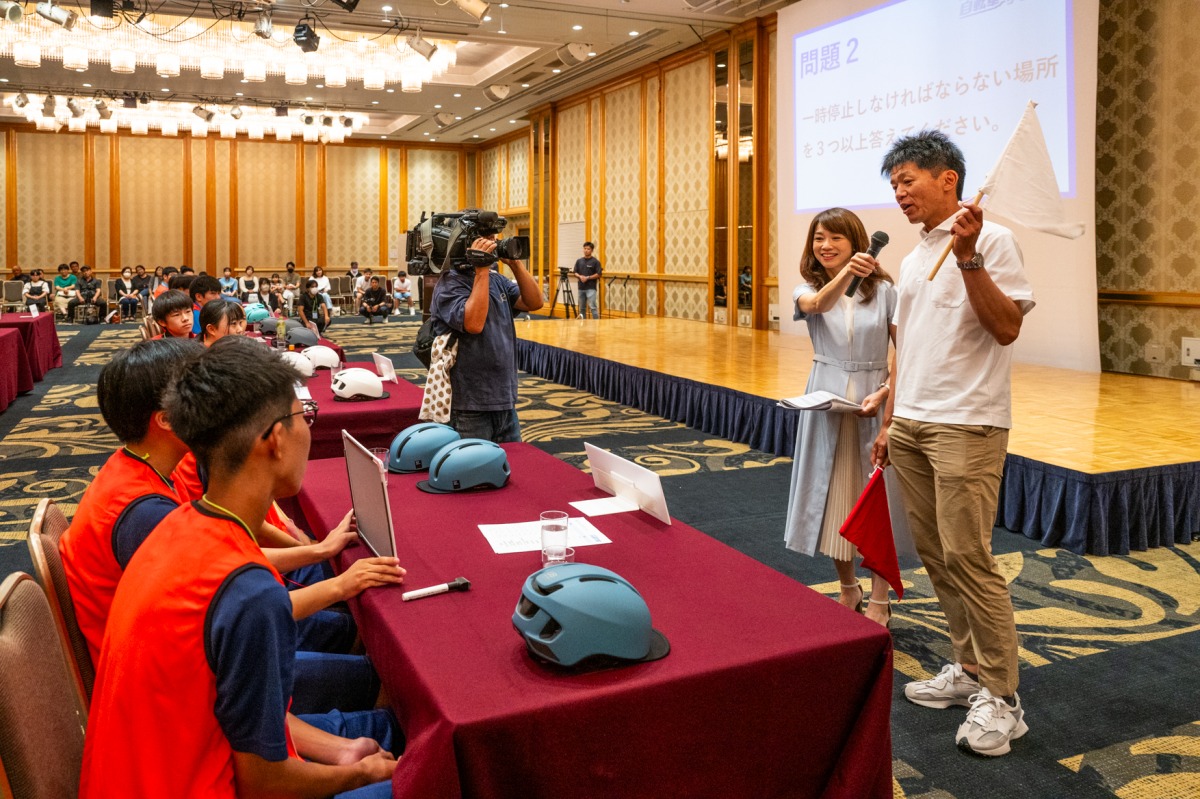 道路交通法に基づいたクイズでは、「自転車における道路交通法違反を3つ以上挙げなさい」や「信号のある交差点で右折する際の方法は?(正解は二段階右折)」といった基本的な問題から、「道路交通法改正後の青切符導入における取り締まり対象年齢は何歳以上か?(正解は16歳以上)」といった最新の話題まで幅広く出題された。