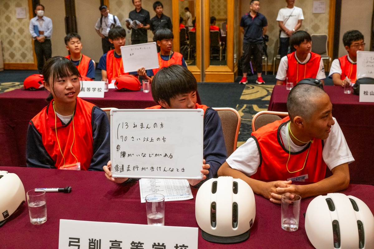 積極的にサイクルツーリズムを実践している弓削高校は自分たちのサイクリングイベントの活動を報告のほか、ヘルメット着用の啓蒙などの安全に関する取り組みも発表した。さらに地元を安全に走るための危険カ所を取りまとめたMAPの制作提案をおこなった。