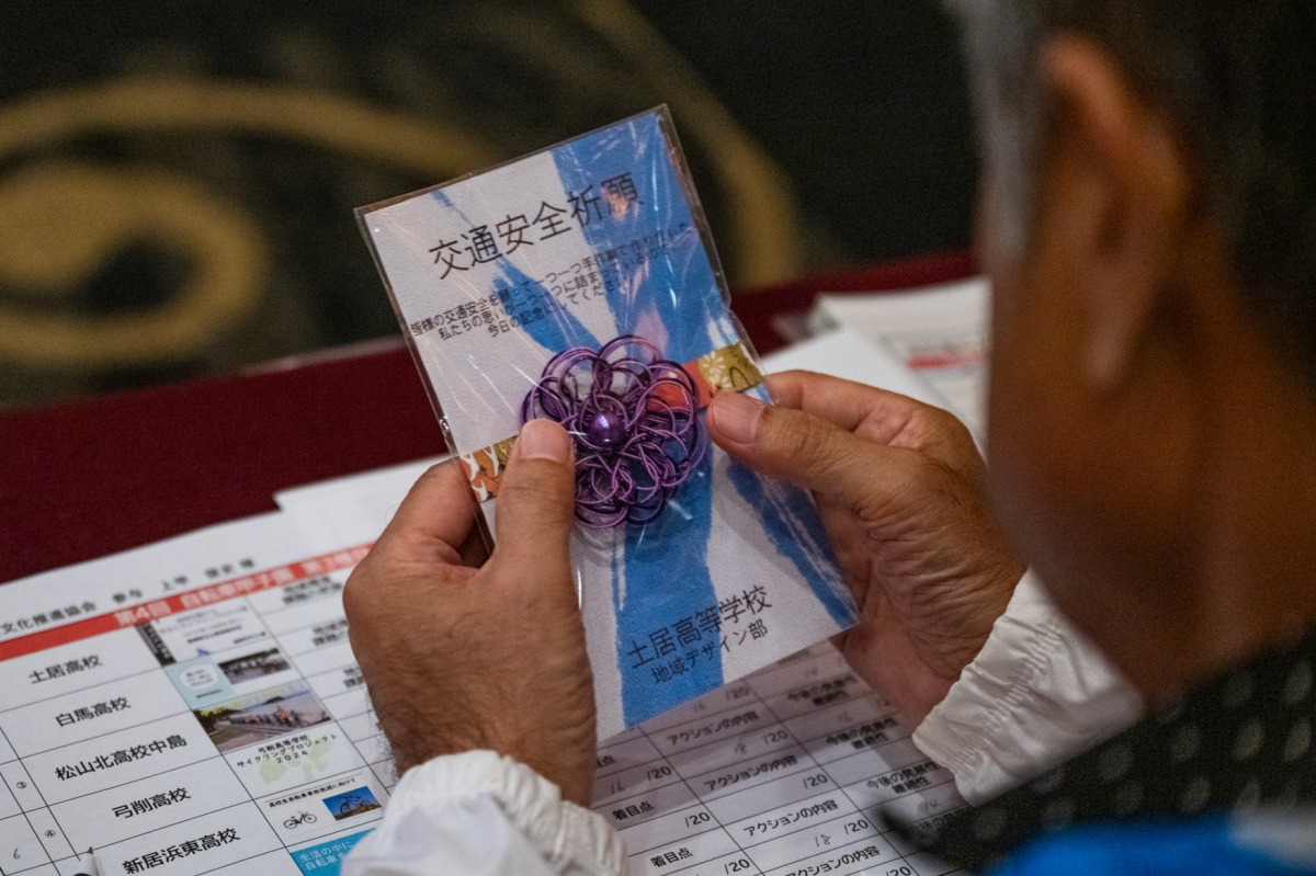 参加メンバーが所属する地域デザイン部、昨年までは情報科学部だったが自転車甲子園出場を機会に名前を変更した。その活動の一つとして交通安全祈願のお守りを制作した