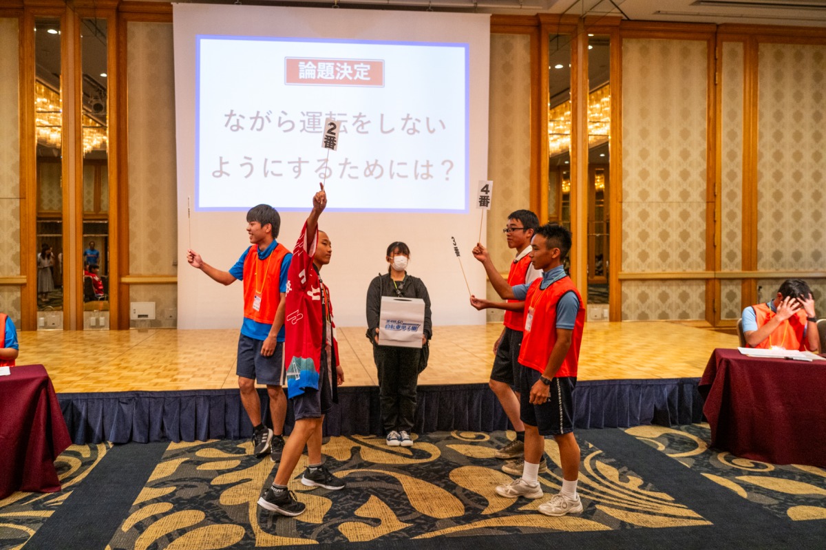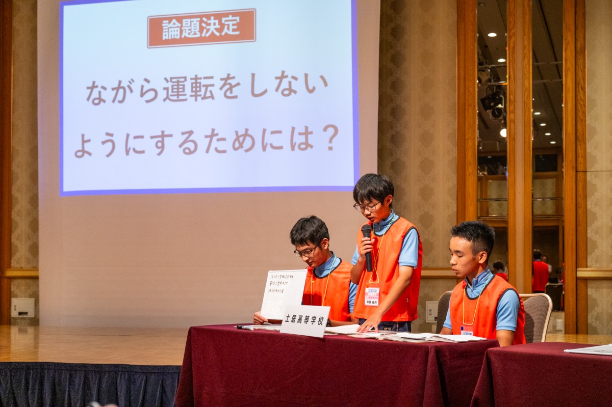 討論バトルでは決勝に進んだのは成績上位から松山北高校中島分校、そして昨年の最優勝校の土居高校、弓削高校、白馬高校の4校となり「ながら運転をしないようにするには?」をテーマに熱い議論を交わした。