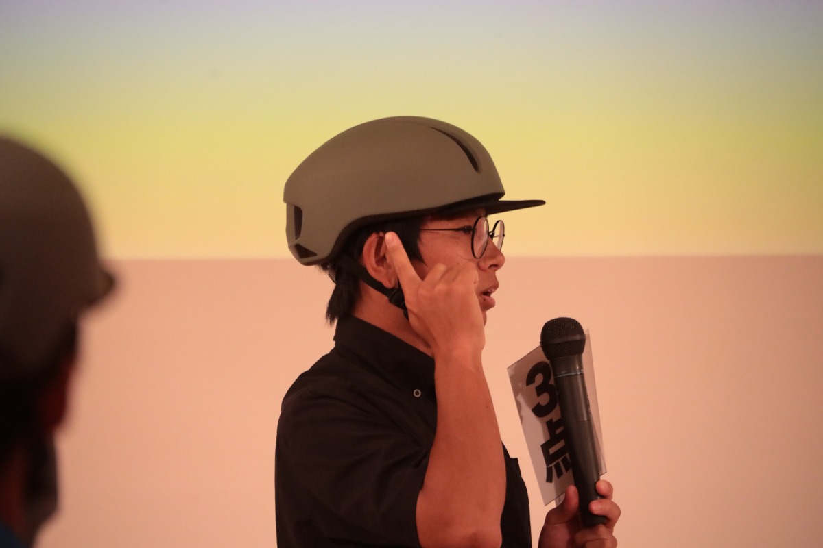 愛媛県自転車新文化スーパーバイザーの門田基志さんが審査員を務め、厳格なジャッジとともに、その解説を行った。