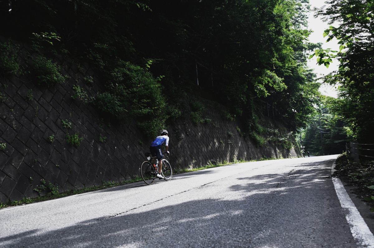 計画的に補給をしつつ走るのはYOUTUBEの「にんにんサイクル」チャンネルを運営するにんにんさん。仕事のためにこの2日目のみの参加になったが、きつい峠でも動画のためにコメントをしながら走る姿はなんともすごい。彼のYOUTUBEチャンネルは最近登録者数1万人を突破したとのこと。今回のイベントの動画もあるので気になった人は見てみよう。