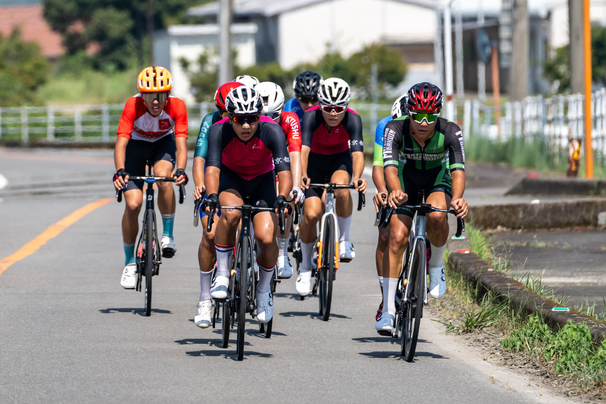 前日にも積極的なレースを展開した川分や、村山健太朗(九州選抜)がアタックをするものの決まらず、2周回目のコース後半の上り坂で以下の9名の選手が抜け出す。