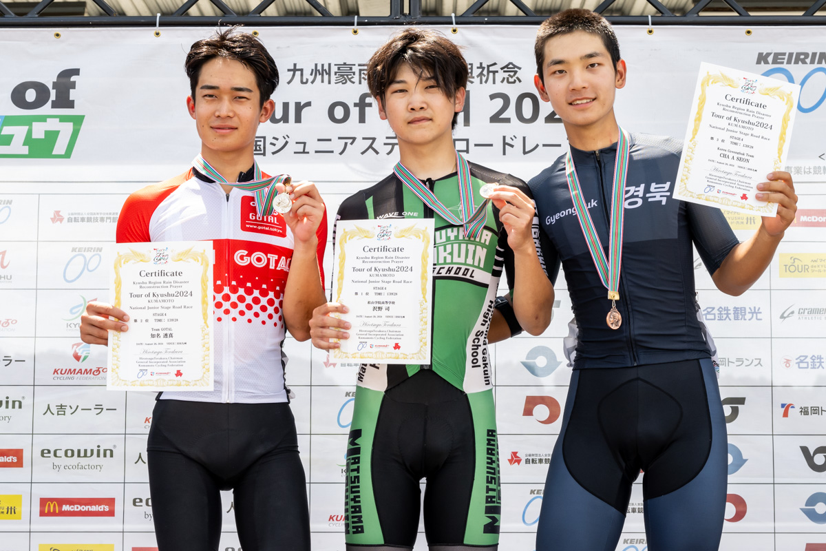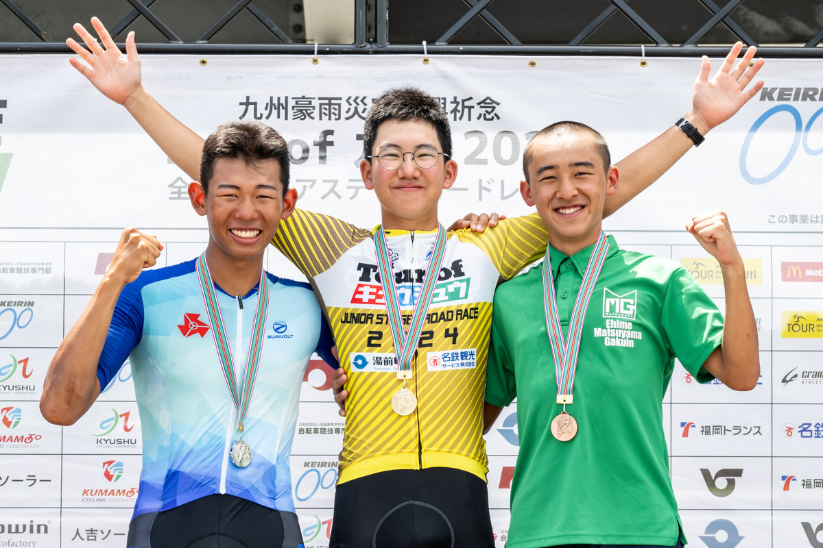 8月17日から20日の4日間、九州・熊本県および大分県にてツアー・オブ・九州2024が開催された。国内唯一のジュニア世代を対象としたステージレースである本大会では、第1ステージや第3ステージにおいて先頭集団で積極的な走りを見せた桑原悠(中国地域選抜)が個人総合優勝および山岳賞を獲得。また、第2ステージで優勝し、第3ステージや第4ステージでも戦略的な走りを見せた山本溜牙(大阪高等学校体育連盟自転車競技専門部選抜チーム)がポイント賞を獲得した。