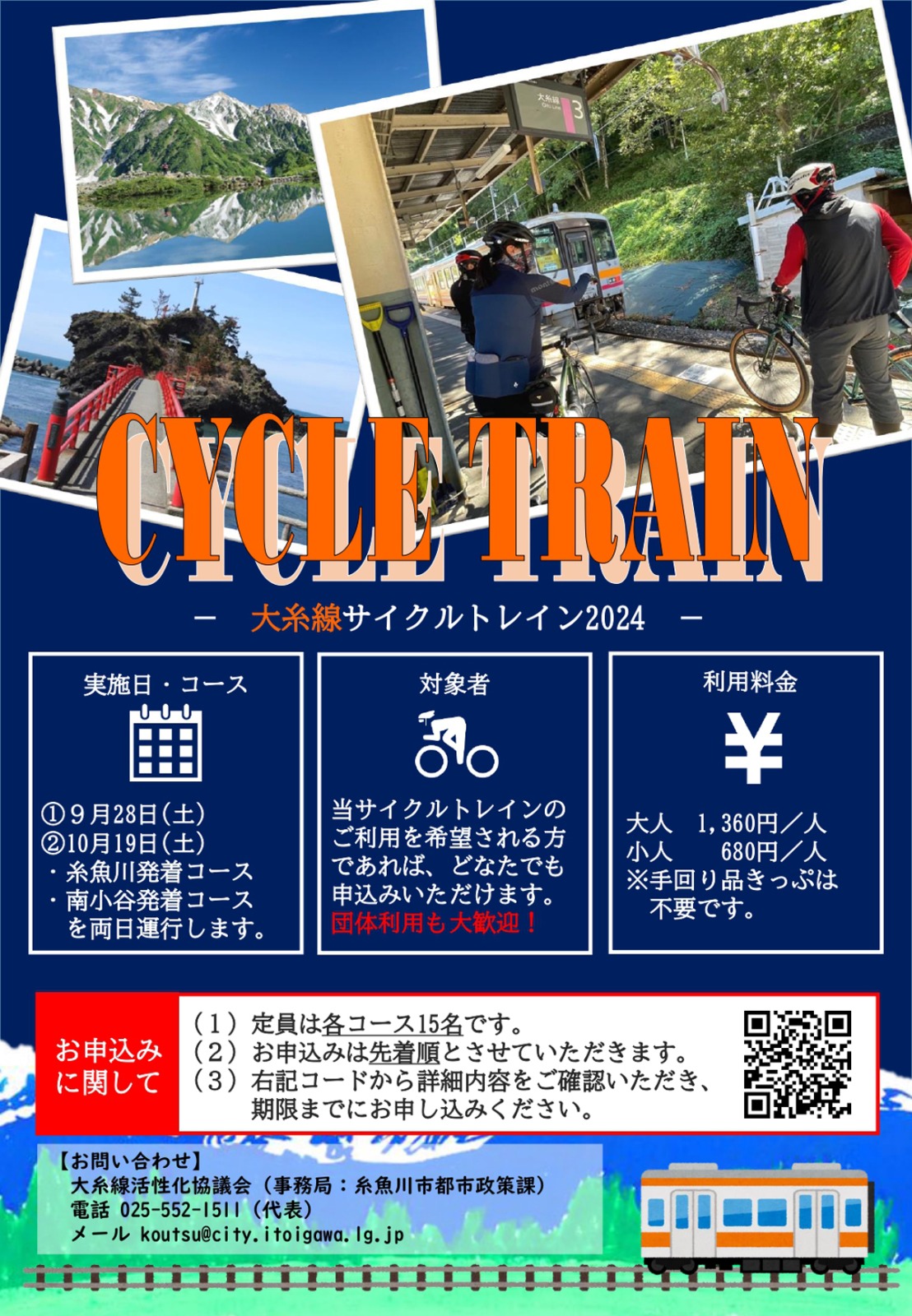 サイクルトレインに参加するには、糸魚川市の公式ホームページから申し込みフォームにアクセスし、事前に申し込む必要がある。申込期限は以下の通りとなっている。