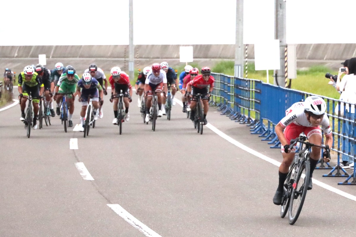 レースは序盤から、石井雄悟(MAS X SAURUS)や鳴海颯(Vini Monzon – Savini Due – Omz)を中心に積極的なアタックが繰り返された。しかし、集団は逃げを許さず、1人が飛び出しても、吸収される場面が何度も見られた。