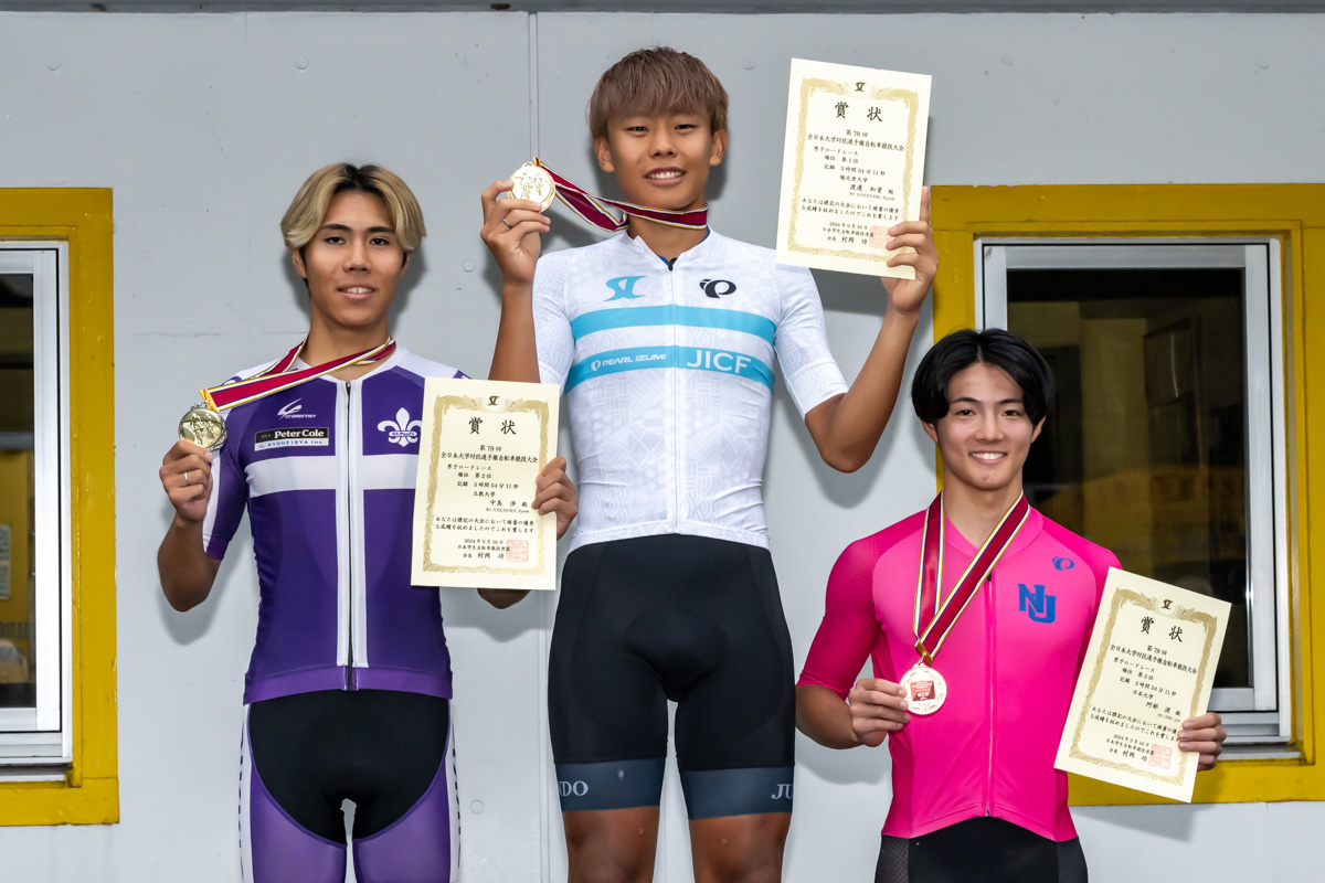 最後は池田と渡部のスプリントとなり、池田が6月に開催された学生選手権個人ロードレースに続き、見事インカレロードを制す形に。池田はトラック・ロード通じて今大会4冠を達成した。