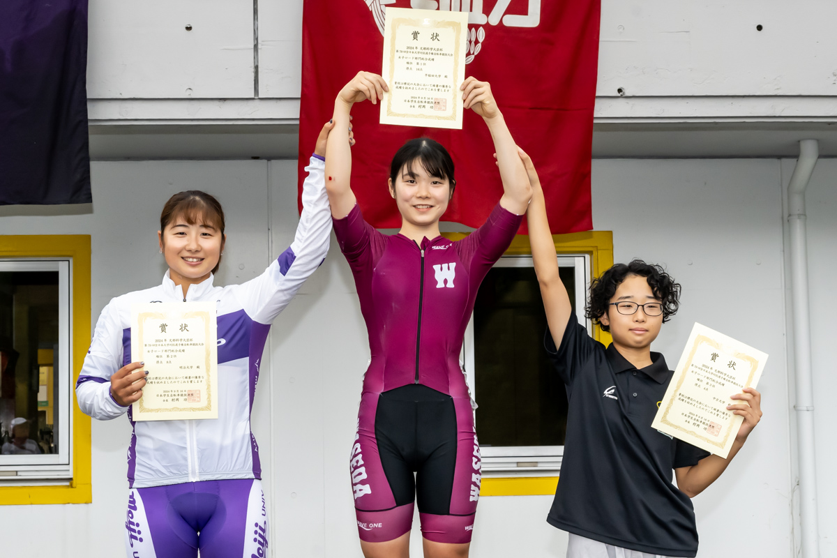 台風10号の影響で当初の予定から2週間遅れとなり、開催地も長野県大町市の美麻地区公道周回コースから群馬サイクルスポーツセンターの6kmサーキットに変更となった今大会、女子はトラックパリ五輪代表の池田瑞紀(早稲田大学)が、男子は渡邉和貴(順天堂大学)がそれぞれ優勝。