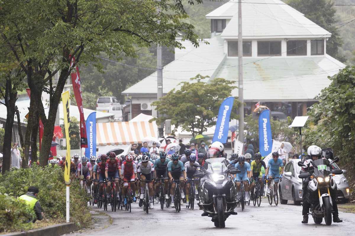 先頭はチームブリヂストンサイクリング、キナンレーシングチーム、シマノレーシングがコントロールする展開の中、98名でスタートした選手が60名ほど絞られる厳しい展開となった。