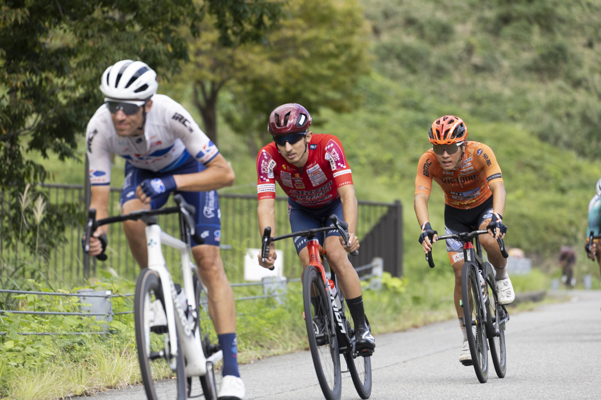 その後、ベンジャミン・ダイボール(ヴィクトワール広島)、風間翔眞(シマノレーシング)、ホセビセンテ・トリビオ(マトリックスパワータグ)、佐藤光(チームサイクラーズ・スネル)、林原聖真(群馬グリフィンレーシングチーム)とアコスタと強力な顔ぶれが逃げレースが動いた。