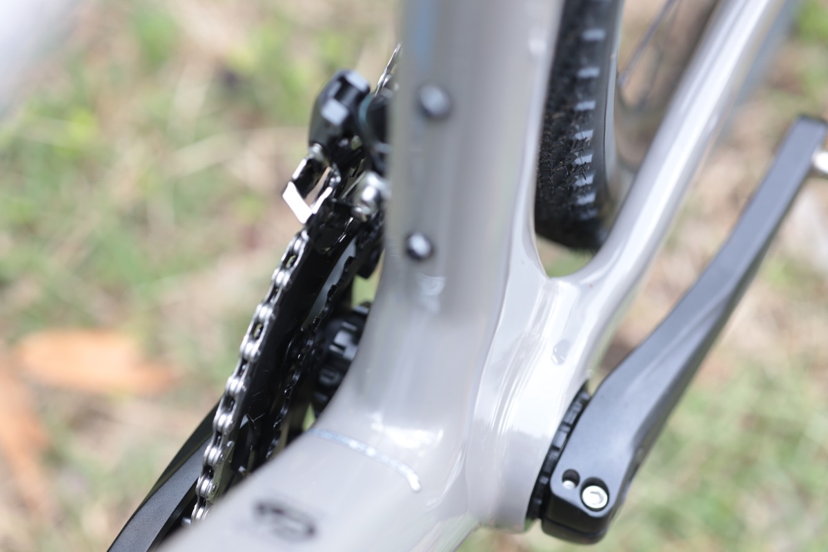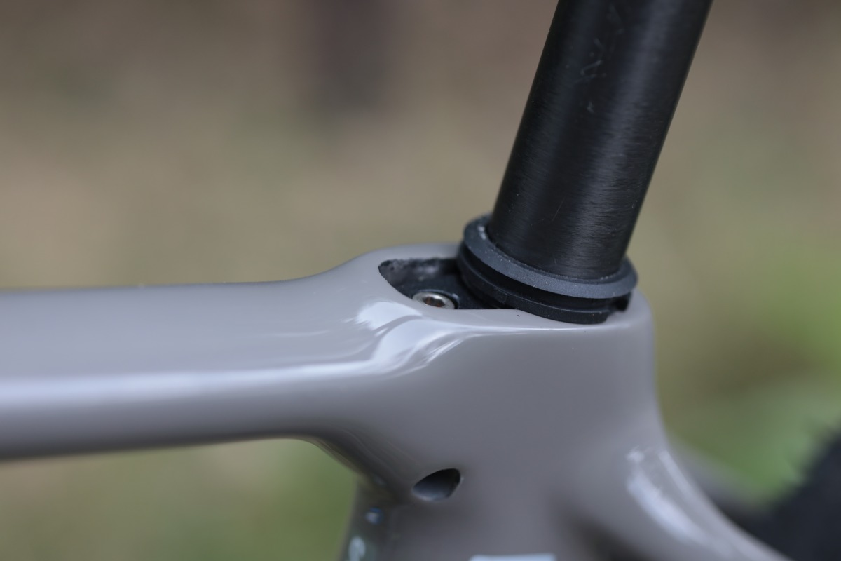フレーム形状は空力を意識しつつも、整備性、快適性、剛性を優先したと思われるもの。悪路を含んだツーリングというよりは、グラベルレースを想定したモデルで、フロントサスペンションやドロッパーシートポストにも対応する。