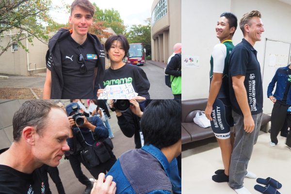 11月1日、埼玉大学校内に停められた大型バスから選手たちが続々と降りてくる。その顔触れは新城幸也、マーク・カヴェンディッシュ、プリモシュ・ログリッチ、ロマン・バルデ、ビニヤム・ギルマイ、ヤスパペル・フィリプセン、ツールを走ってきた名選手らと、大会アンバサダーであるマルセル・キッテルだ。