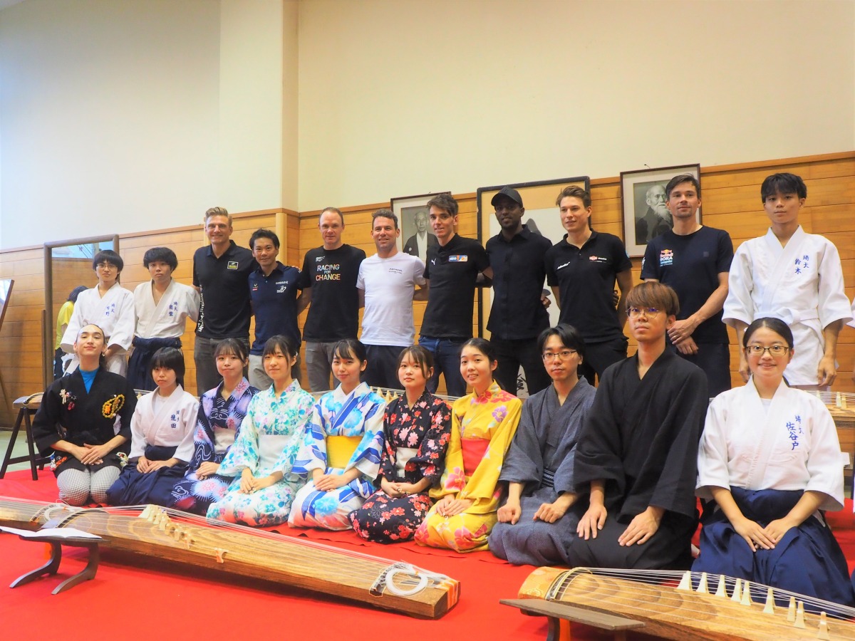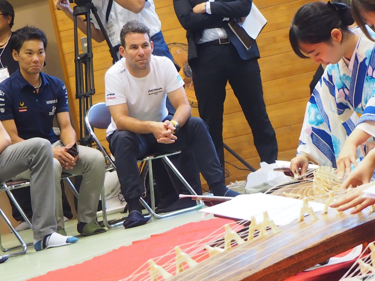 今回選手たちは「J:COM presents 2024 ツール・ド・フランスさいたまクリテリウム さいたま市内交流会」として、埼玉大学で合気道と琴の体験を行うことになったのだ。テンションの上がる大学生(特に自転車部員)を前に、選手たちはスマートにサインを済ませながら体育館へ向かう。