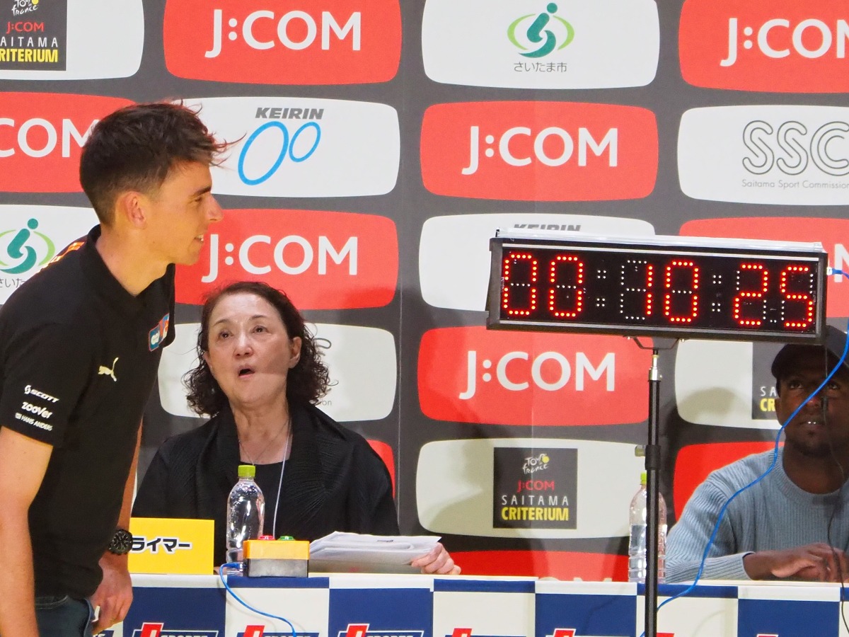 日本らしい新体験を経てリフレッシュした選手たちは、続けてさいたまスーパーアリーナでのステージイベントへ。さいたまクリテリウムでは毎年恒例となっているこのイベントではログリッチ、ギルマイ、バルデ、カヴェンディッシュの4名が登壇。