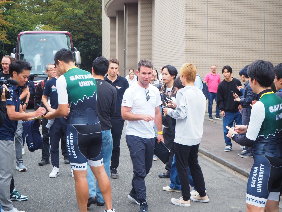 11月1日、埼玉大学校内に停められた大型バスから選手たちが続々と降りてくる。その顔触れは新城幸也、マーク・カヴェンディッシュ、プリモシュ・ログリッチ、ロマン・バルデ、ビニヤム・ギルマイ、ヤスパペル・フィリプセン、ツールを走ってきた名選手らと、大会アンバサダーであるマルセル・キッテルだ。