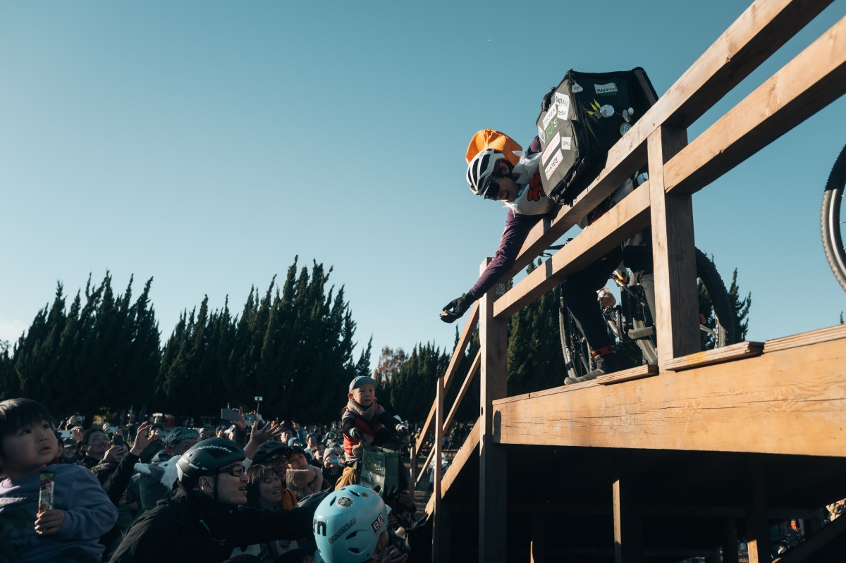 フライオーバーはオウルクラスではお立ち台に様変わり。お菓子などを下にいる観戦者に配布する。子供たちが大喜びで飛び跳ねている姿に自転車業界の未来を感じてもいいのだろうか。