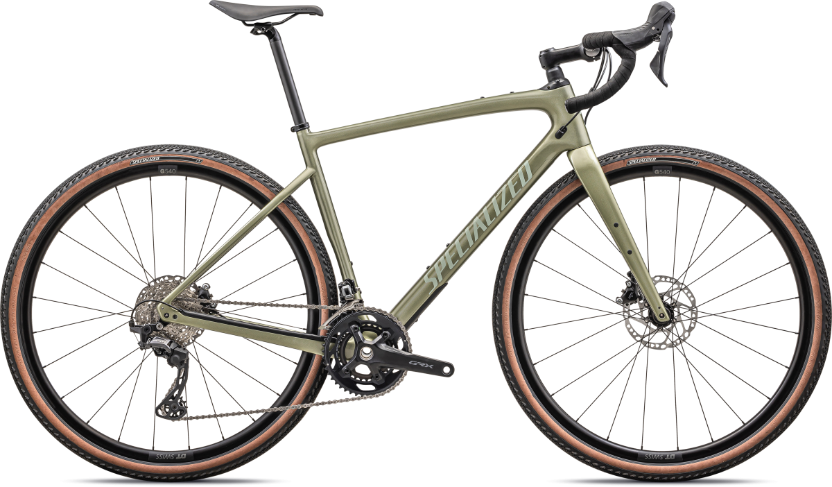 「Diverge Sport Carbon」には、「サテンドッピオ/ガンメタル」「サテンメタリックスプルース/スプルース」の2色が追加。Future Shock 1.5、FACT 8rカーボンフレーム、そして高い走破性を誇るPathfinder Pro 42mmタイヤを備え、あらゆるグラベルライドに対応する。