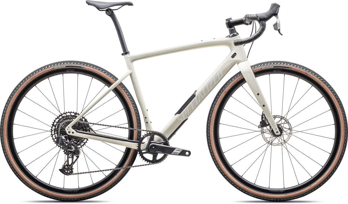 今回、カーボンフレームモデル2機種に新色が登場。最上位モデル「Diverge Comp Carbon」には、洗練された「グロスバーチ/ホワイト」が追加。SRAMのワイヤレス電動コンポーネントApex eTap AXS 12速、Future Shock 2.0サスペンションシステムなど、最先端技術を搭載し、快適性とパフォーマンスを両立している。