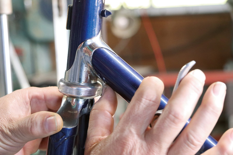 目で見て触って確認できるほうがベターだ。モニターでは分からない不自然なところが、目なら容易に分かることも。ショップでも、フレーム修正の知識があるところのほうがより安心だろう。ある程度の歪みなら、芯出し(修正)で、しゃきっとした乗り味を取り戻せるのが鉄フレームの良いところでもある。