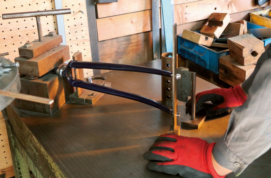フレーム工房ならチェックと修正が可能だ。工房もそんなに多くはないので、まずポイント2の方法でチェックして「見て異常が認められたら、近くの工房を探して持ちこむのもあり」と荒井さん。絹自転車工房では、チェック&軽微な修正で工賃5000円だ。