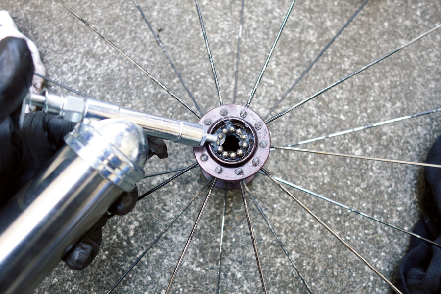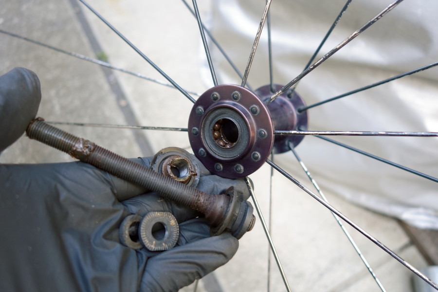 数多くのエントリーモデルに搭載されたシマノ・WH-R500は、ハイコストパフォーマンスという意味では最強の定番ホイールといえる。完成車から外した後に、ローラー台用、さらには外置きの自転車用として10年酷使してきた。さすがにガタが出てきたので、分解クリーニング&リペア。ハブ構造は、一般車と同じカップ&コーン式だ。ベアリングなどを交換して再調整すれば、走りを取り戻せる。