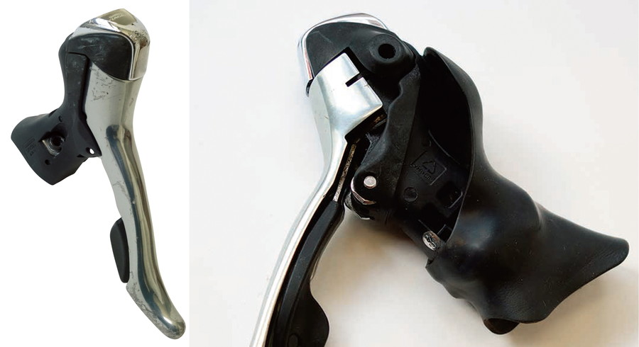 息子はSTIレバー育ちなので、操作に慣れた9速レバーを導入。失敗したのは、レバーフードのない中古を入手したこと。ST-4500では適合するフードはもう廃版。以前の壊れたレバーのものがあったので装着した。フードなしは要注意だ。