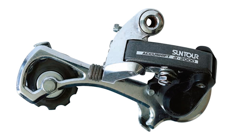 オールドMTBブームで、最近またリスペクトされる往年の国産メカ、サンツアー。あれっシフターが9速でスプロケットが8速?と気づいた人は鋭い。アキューシフト(サンツアーのインデックス規格)対応のリアメカは、シマノ9速シフターで引くとシマノ8速でインデックスするいう噂がある。今回そんな都市伝説を検証。うまくいけば、サンツアーを使うことで9→8コンバートできる。メカはα2000、チープなメカはマニアにも人気がなく新古品でたまに見るやつだ。