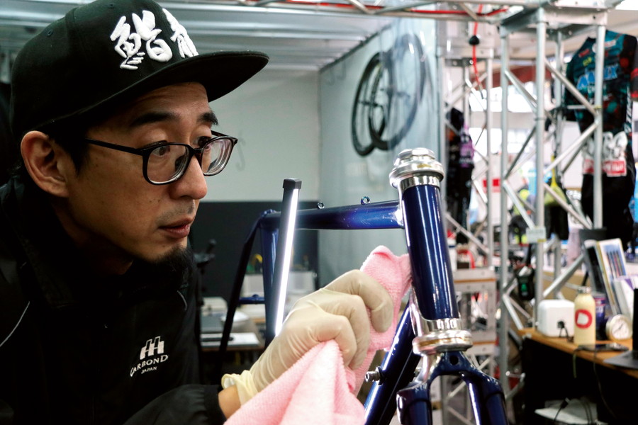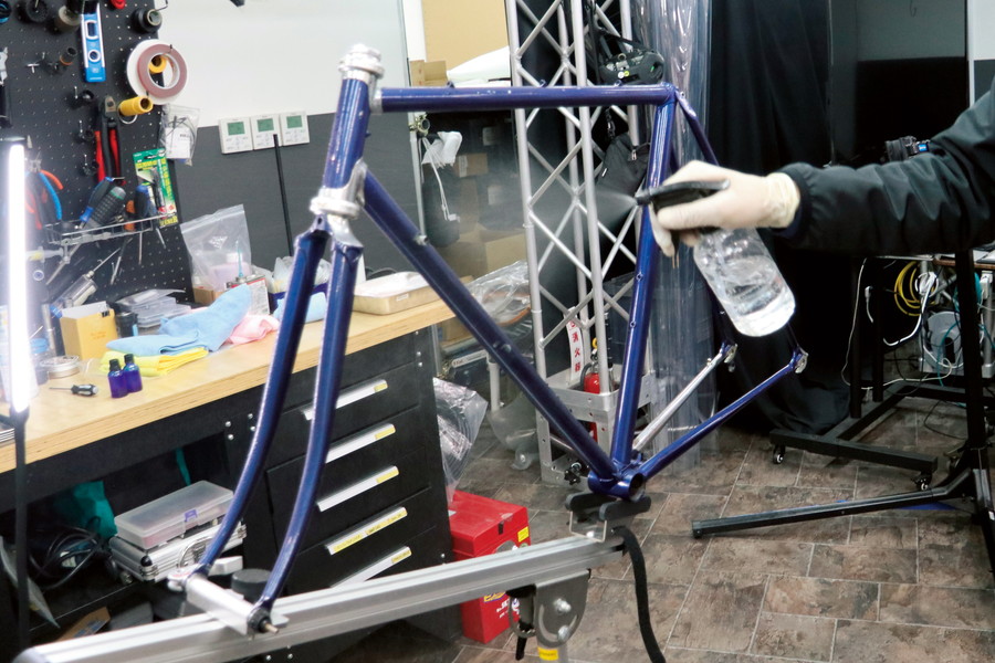 CDJ TOKYOは、自転車向けハドラスコーティングを初期の頃から行っている、Fusion HardolassPRO施工店。防傷・防錆と防汚の2種のコート層を独自手順で生成する。ベースとなる塗装が荒れている場合はポリッシングなども含めて対応。カスタムペイント後の塗装保護にも人気とのこと。またホイールなどにも施工可能だ