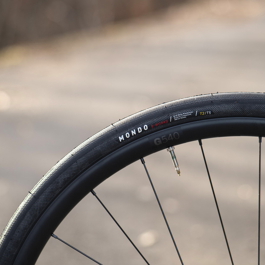 32CのS-WORKS Mondoがアッセンブルされる。近年ロードレースで30Cが普及していることを考えると、今日のエンデュランスロードの最適解は32Cかもしれない