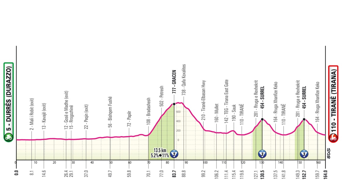 5月9日 第1ステージ ドゥラス(アルバニア)-ティラーナ(アルバニア)164km 丘陵 ★★★