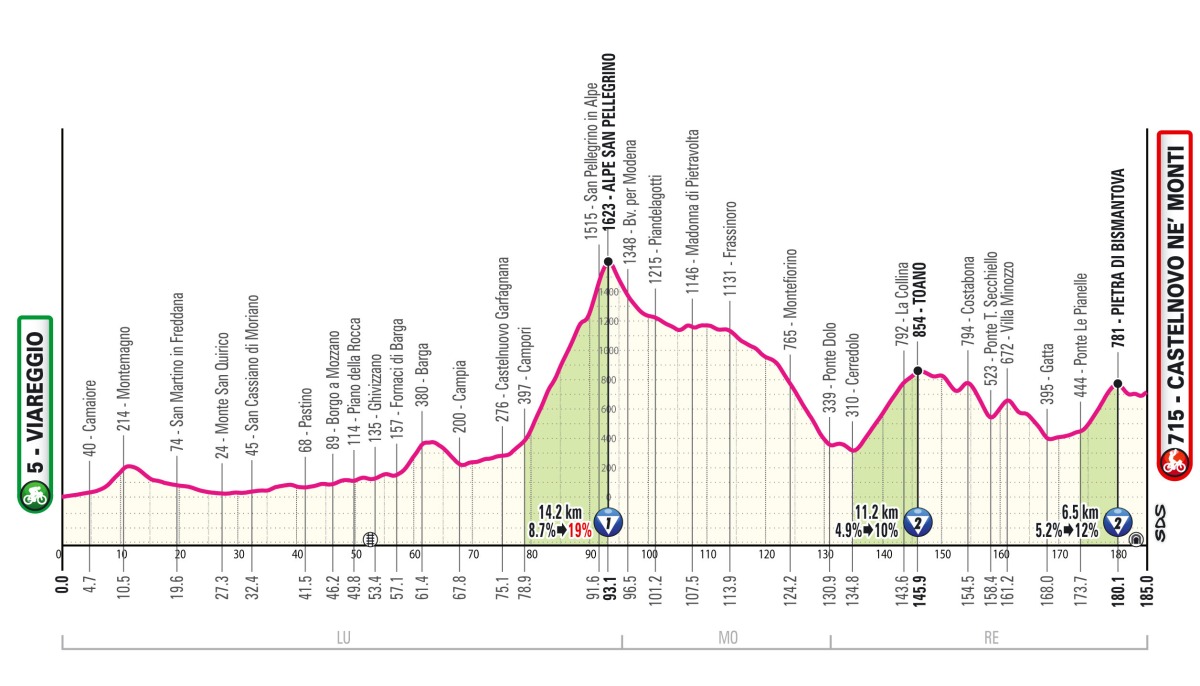 5月21日 第11ステージ ビアレッジョ-カステルノーヴォ・ネ・モンティ 185km 丘陵 ★★★